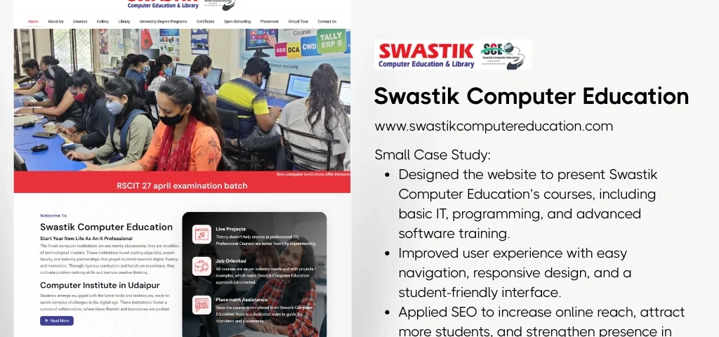 Computer Education Website Designer in India – India Web Designer Provide Computer Education Web Design, Web Development, Computer Education SEO Services in India. Whatsapp at 9602841237 for Web Design enquiry for Computer Education , get a quote online.