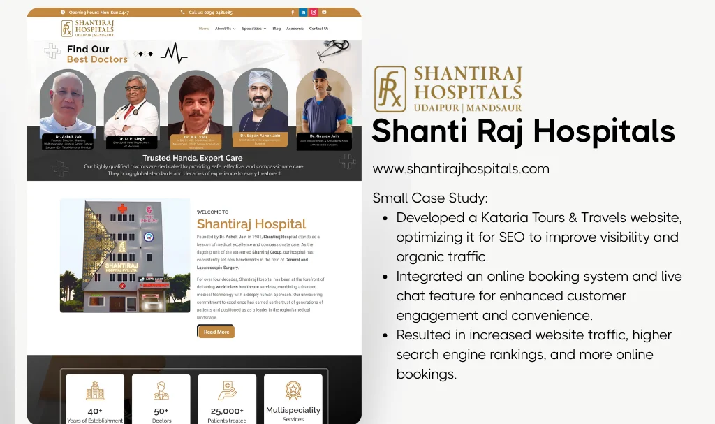 Hospital Website Designer in India – India Web Designer Provide Hospital Web Design, Web Development, Hospital SEO Services in India. Whatsapp at 9602841237 for Web Design enquiry for Hospital , get a quote online.